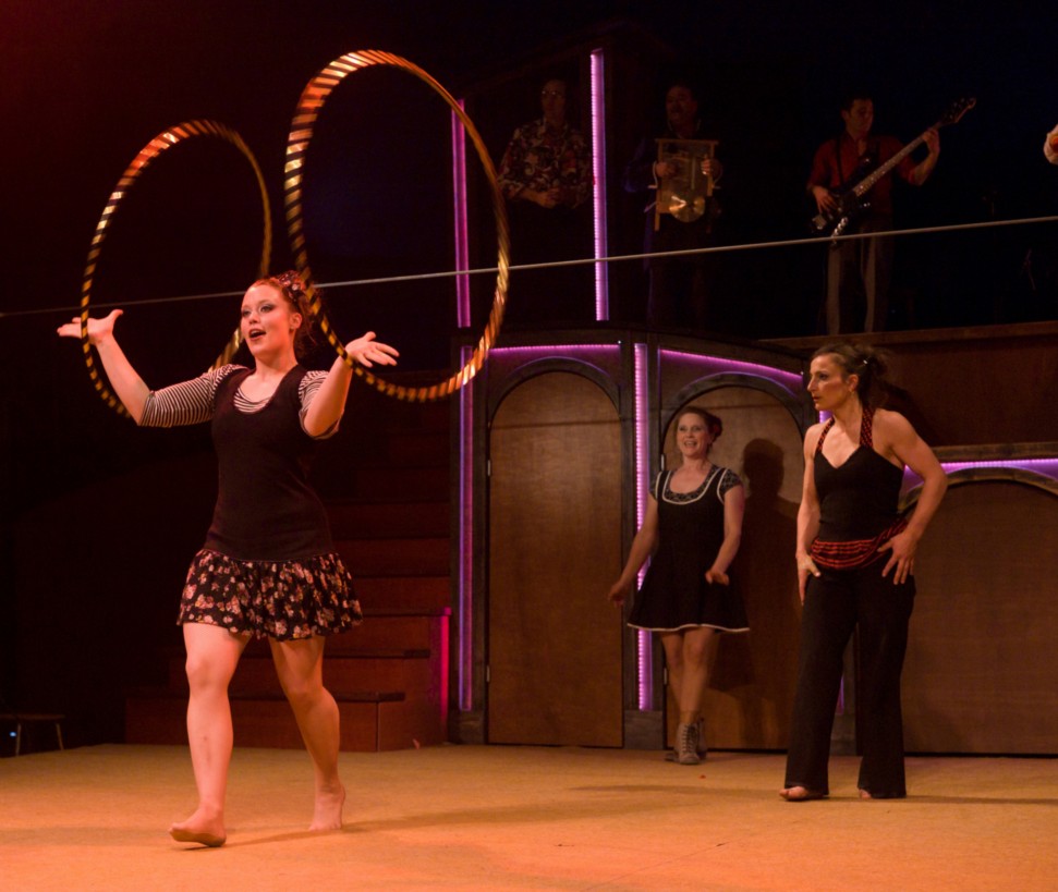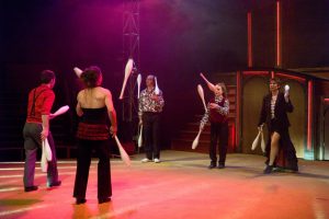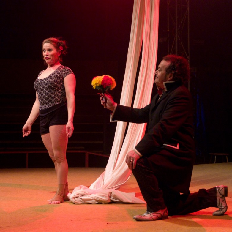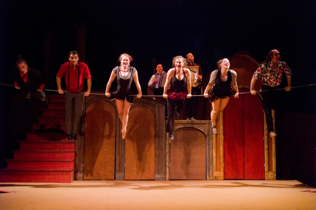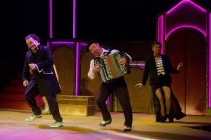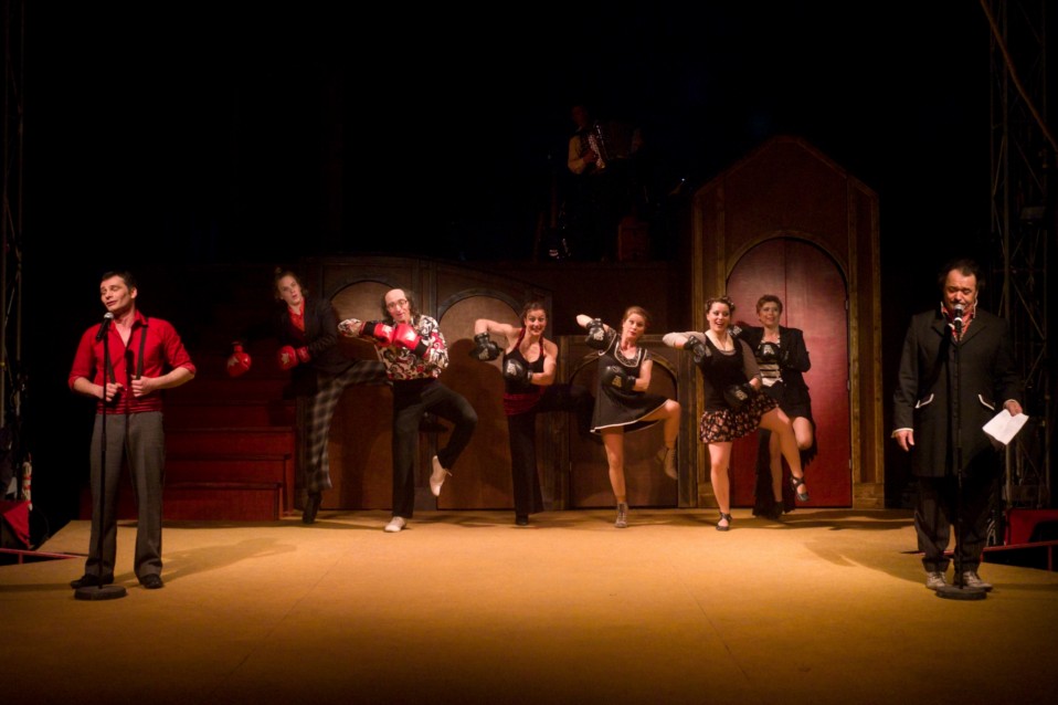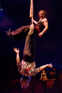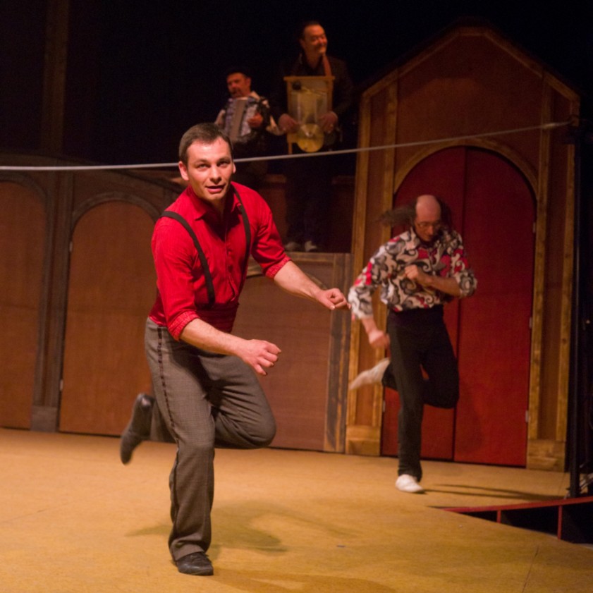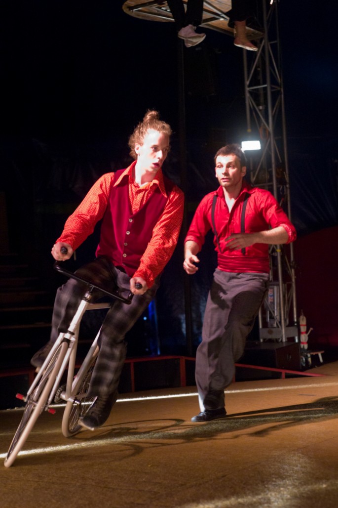 « Andiamo » n’est pas un concert, ni une succession de numéros de magie, trapèze, jonglerie, tissus etc…, mais un fantastique numéro de « Touça »; les pitreries, chamailleries et engueulades émaillent l’histoire de ce cirque ubuesque.